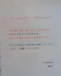 5月1日(金)、5月2日(土)は休診します。