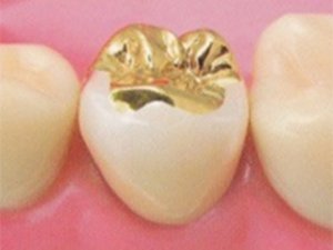 金合金を用いたインレーで健康保険適応外となります。非常になじみがよく歯と詰め物の間に隙間が出来にくいため再び虫歯になりにくいとされ、保険適応のインレーと比較し金属色が目立ちにくいです。